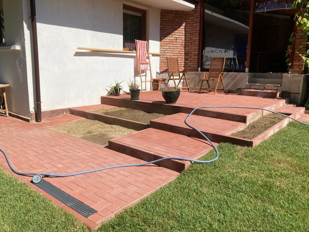 Премахване на съществуваща настилка, Полагане на настилки, полагане на трошенокаменна фракция, оформяне на паркоместа, оформяне на водомерни и канализационни шахти, полагане на паркоелементи и градински алеи, Монтаж на линейни отводнители, Оформяне на тротоар.