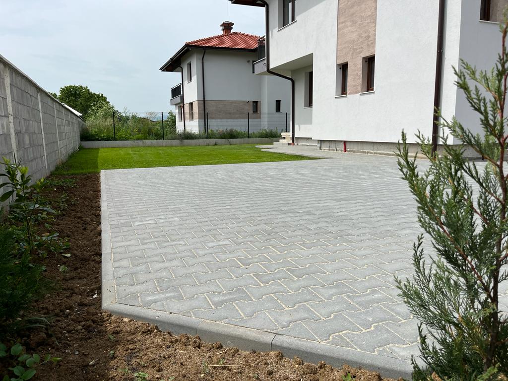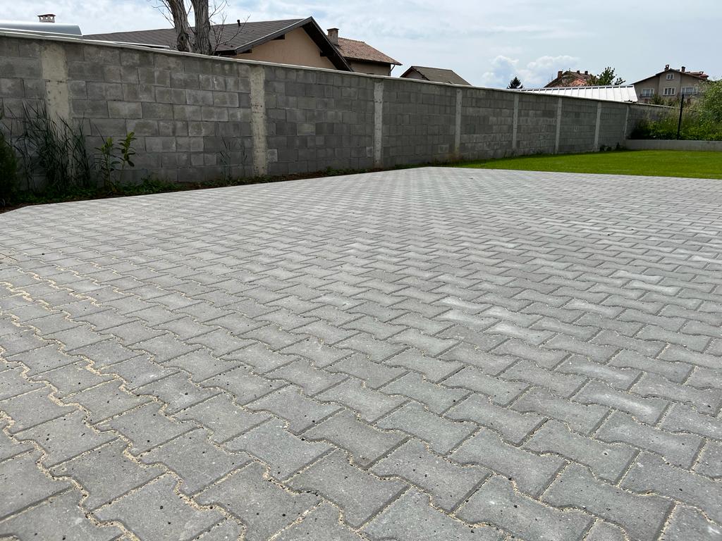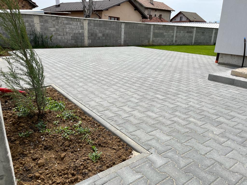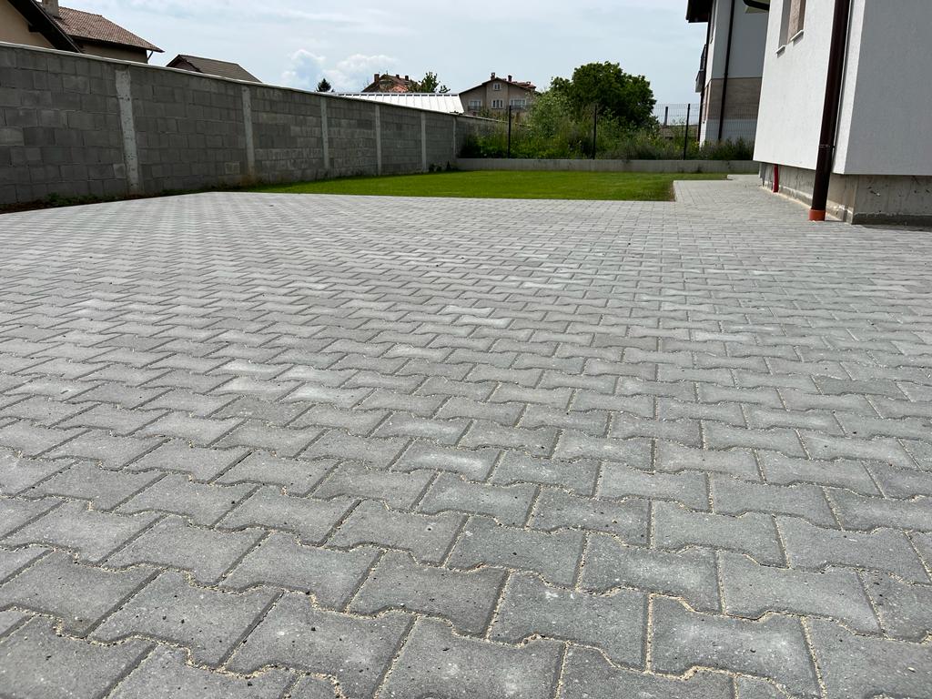 Проектиране на цялостната вертикална планировка, полагане на трошенокаменна фракция, озеленяване, полагане на настилки, оформяне на паркоместа.